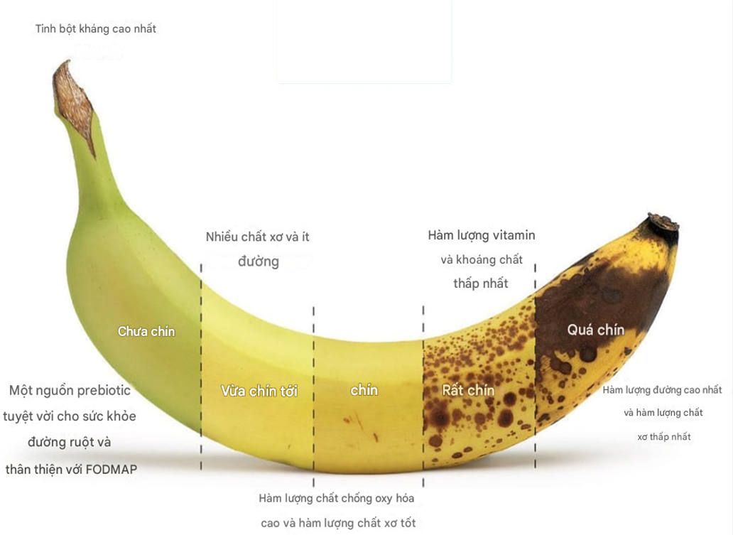 Quả chuối trải qua ba giai đoạn chín chính, thể hiện rõ qua màu sắc vỏ. Ở giai đoạn đầu, vỏ chuối màu xanh, thịt quả còn cứng và vị hơi chát do hàm lượng tinh bột cao. Khi chuyển sang màu vàng, chuối đạt độ chín vừa, thịt mềm hơn, vị ngọt tăng lên và hương thơm bắt đầu rõ rệt. Đến khi xuất hiện các đốm nâu trên vỏ, chuối đã chín kỹ, quả rất mềm và có vị ngọt đậm đặc trưng> Vậy từng giai đoạn này có gì khác nhau và ảnh hưởng đến sức khỏe thế nào, cùng Riff tìm hiểu xem điểu hay của từng giai đoạn nhé.