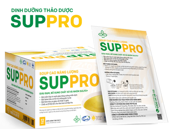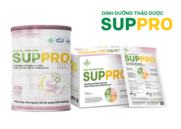 Suppro là một dòng sản phẩm cung cấp năng lượng cao, giúp phục hồi sức khỏe nhanh, phòng ngừa sụt cân, suy mòn. Ngoài ra còn giúp duy trì và phục hồi khối cơ nhờ đạm whey chất lượng cao chứa BCAA và được bổ sung các acid amin thiết yếu không tự tổng hợp được cho cơ thể. Ngoài ra, Suppro còn chứa thành phần Arginine giúp tăng liên kết mô, hỗ trợ quá trình làm lành vết thương. Đồng thời, suppro sử dụng hệ chất béo thực vật MUFA, PUFA, MCT dễ hấp thu, tốt cho tim mạch.