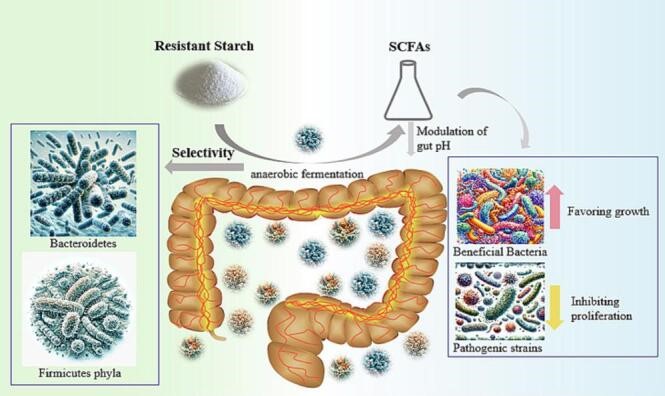 Một khía cạnh thú vị khác của quá trình lên men RS là tính chọn lọc của nó. Không phải tất cả vi khuẩn đường ruột đều có khả năng lên men RS hiệu quả; các nhóm vi khuẩn cụ thể, đặc biệt là các nhóm thuộc ngành Bacteroidetes và Firmicutes, đã được xác định là những tác nhân lên men RS chính. Quá trình lên men chọn lọc này có thể dẫn đến sự thay đổi trong thành phần vi khuẩn đường ruột. Việc bổ sung RS thường xuyên có thể thúc đẩy sự phát triển của các vi khuẩn lên men RS này, làm giàu đường ruột với các vi khuẩn có lợi, từ đó tăng cường hiệu quả lên men và sản xuất SCFA. Do đó, sự tương tác năng động giữa RS và hệ vi sinh vật đường ruột hứa hẹn những can thiệp có mục tiêu, có khả năng điều chỉnh thành phần và hoạt động của vi khuẩn đường ruột thông qua các chiến lược dinh dưỡng [1].