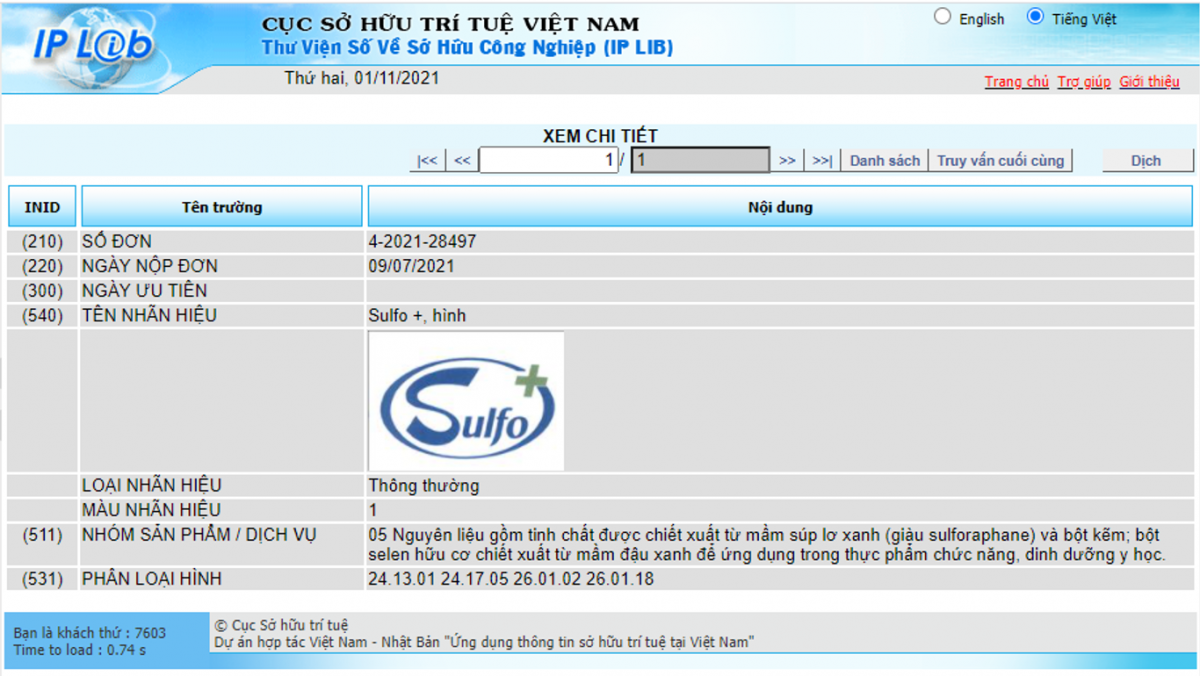 Hiện nay, Viện Nghiên cứu thực phẩm chức năng đã bảo hộ nhãn hiệu độc quyền nhóm Sulfo+ tại Cục sở hữu trí tuệ Việt Nam