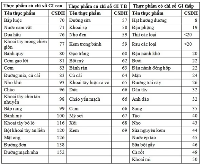 • Nguyên tắc: GI là chỉ số làm tăng đường máu trong thực phẩm có chứa bột đường so với glucose. Chế độ ăn Low GI là sử dụng chỉ số GI khi lựa chọn thực phẩm. Sử dụng thường xuyên các loại thực phẩm có chỉ số GI thấp, trung bình và giảm lượng thực phẩm có chỉ số GI cao.