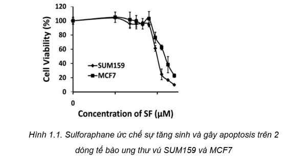 - Sulforaphane ức chế sự phát triển và gây ra quá trình chết của tế bào ung thư vú