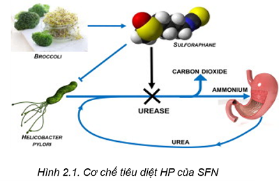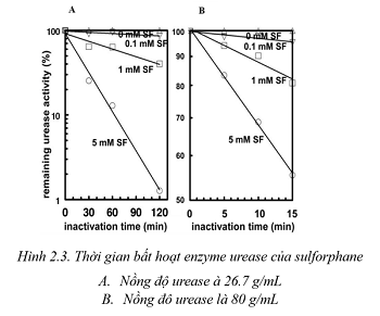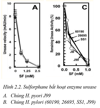Kết quả nghiên cứu của Jed W. Fahey và cộng sự (2013) về hiệu quả sử SFN trên Hp như sau: SFN làm bất hoạt enzym urease ( Hình 2.2), tốc độ và mức độ làm mất hoạt tính urease phụ thuộc vào 3 yếu tố: nồng độ của chất ức chế, thời gian ủ với chất ức chế và nồng độ của enzym.